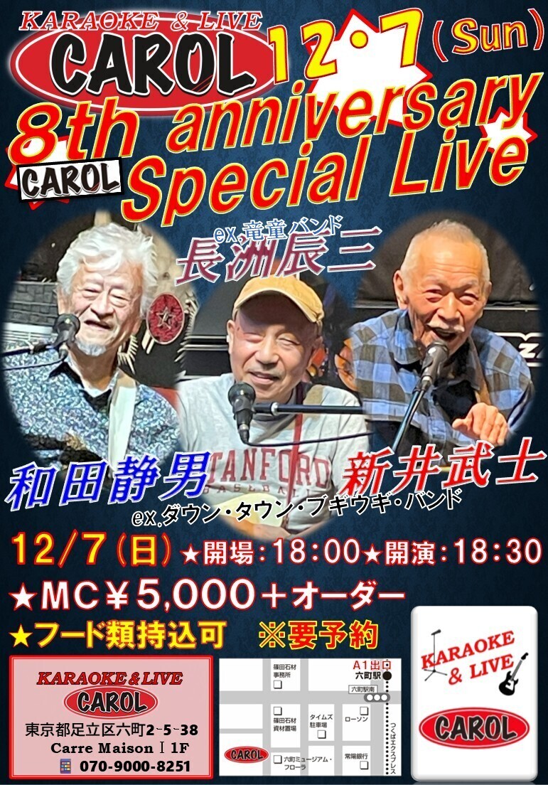 そこで、2025年12月7日に昨年大好評だった、当店CAROLのライブでお馴染みの…